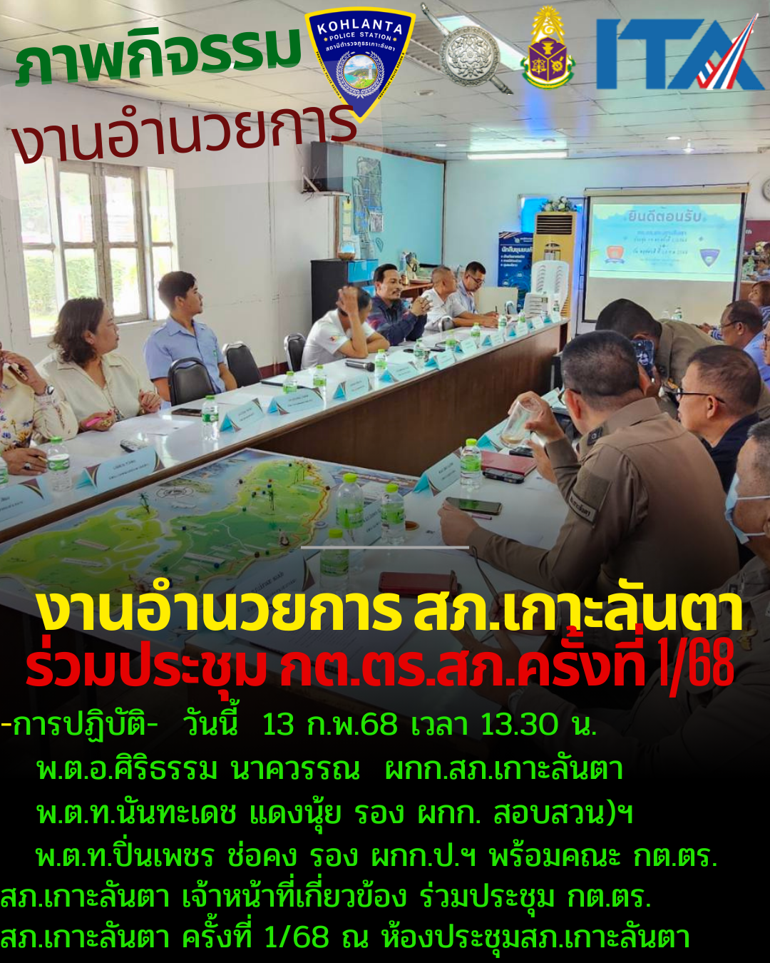 วันนี้ 13 ก.พ.68 เวลา 13.30 น. พ.ต.อ.ศิริธรรม นาควรรณ ผกก.สภ.เกาะลันตา ได้จัดการประชุม คณะกรรมการตร