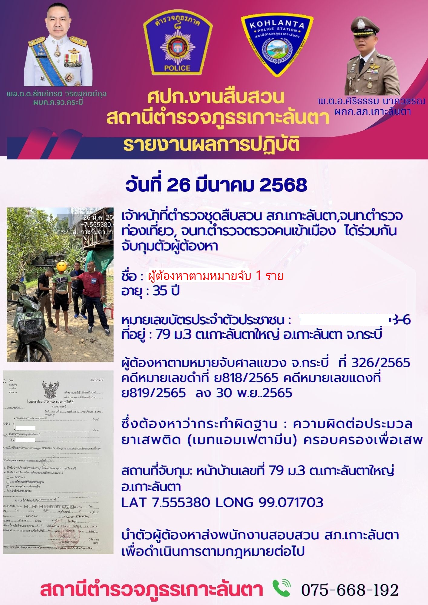 สภ.เกาะลันตา ภ.จว.กระบี่ —————————- วันนี้ ๑๔