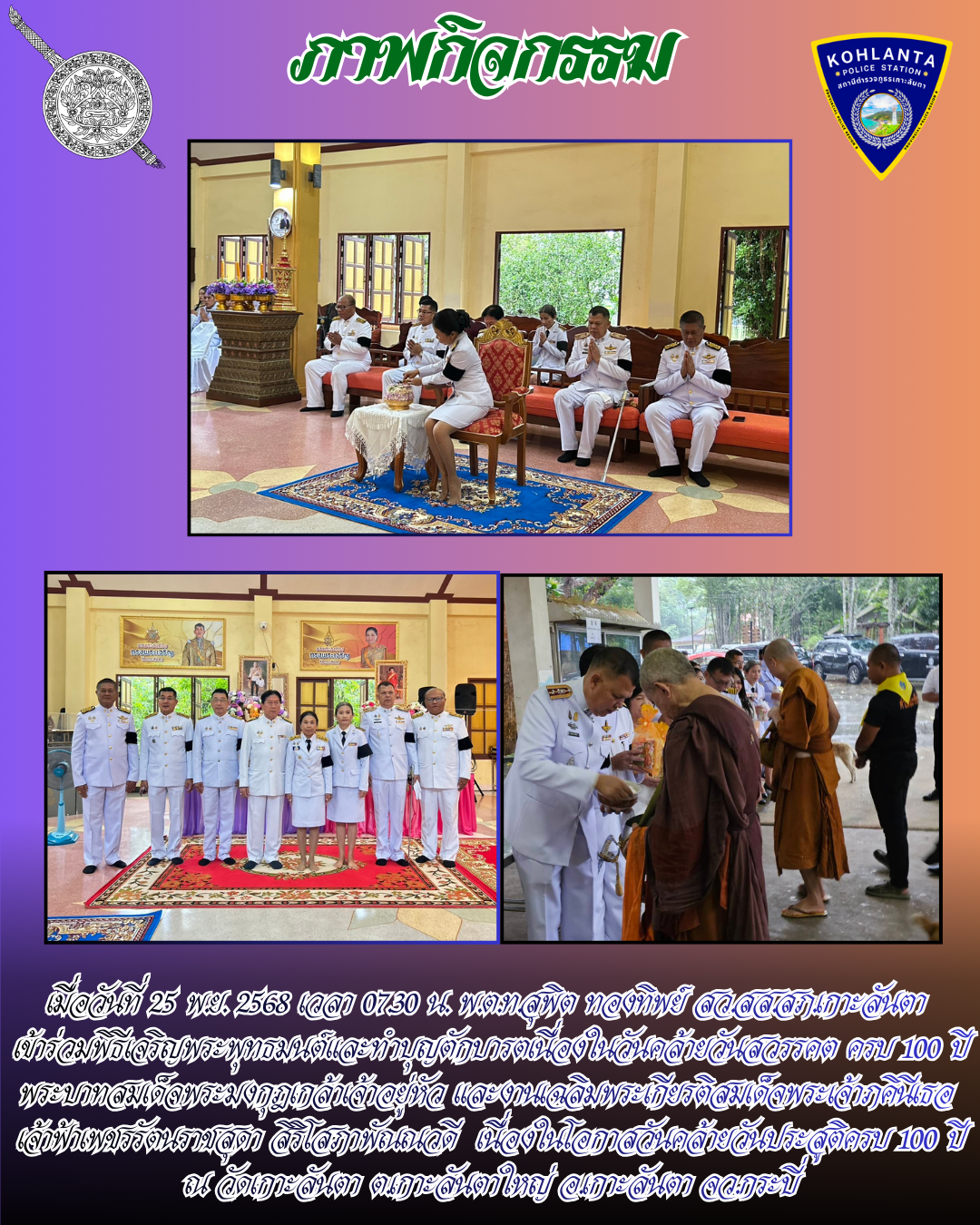 เมื่อวันที่ 25 พ.ย. 2568 เวลา 07.30 น. พ.ต.ท.สุพิต ทองทิพย์ สว.สส.สภ.เกาะลันตา เข้าร่วมพิธีเจริญพระพ