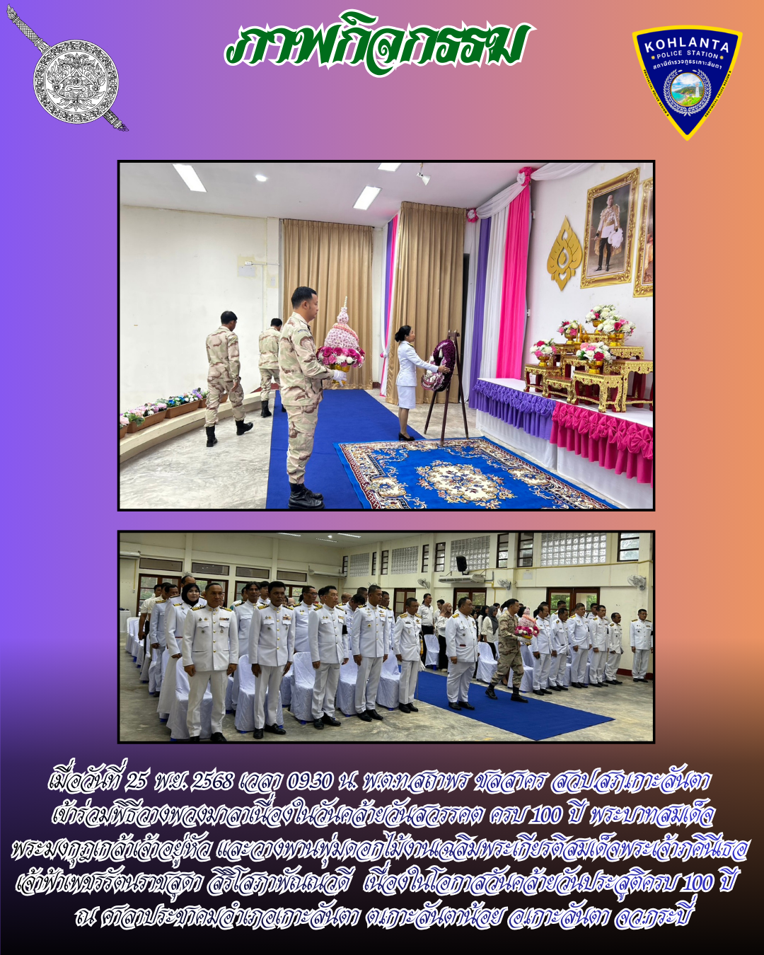 เมื่อวันที่ 25 พ.ย. 2568 เวลา 09.30 น. พ.ต.ท.สถาพร ชลสาคร สวป.สภ.เกาะลันตา เข้าร่วมพิธีวางพวงมาลาเนื