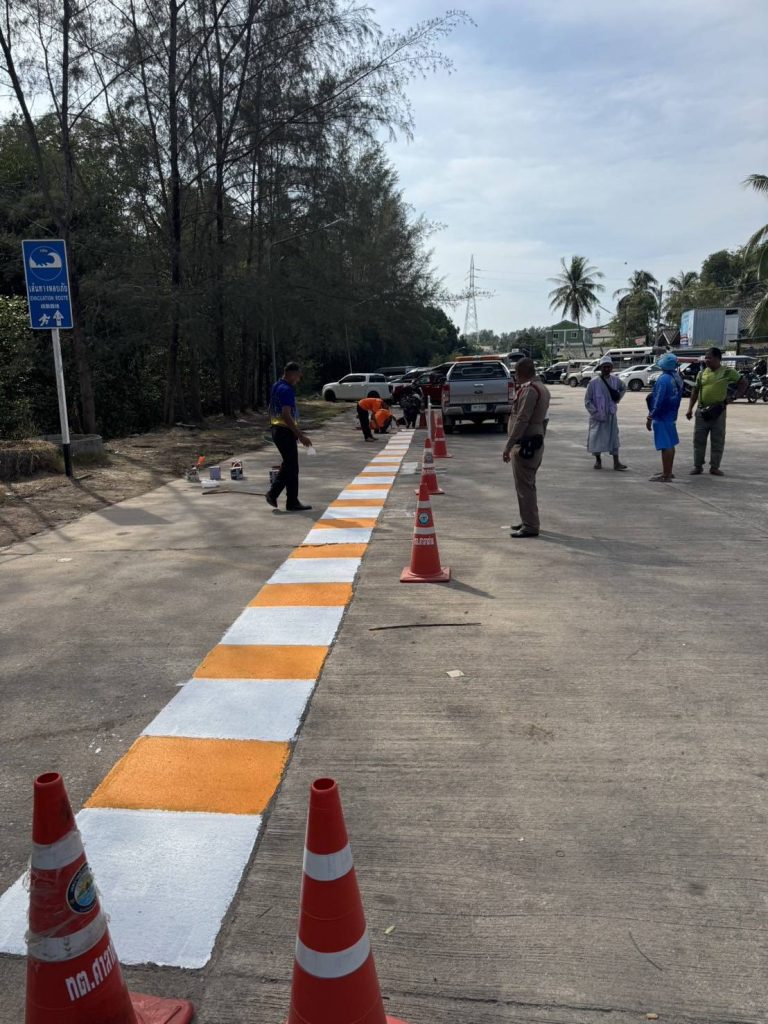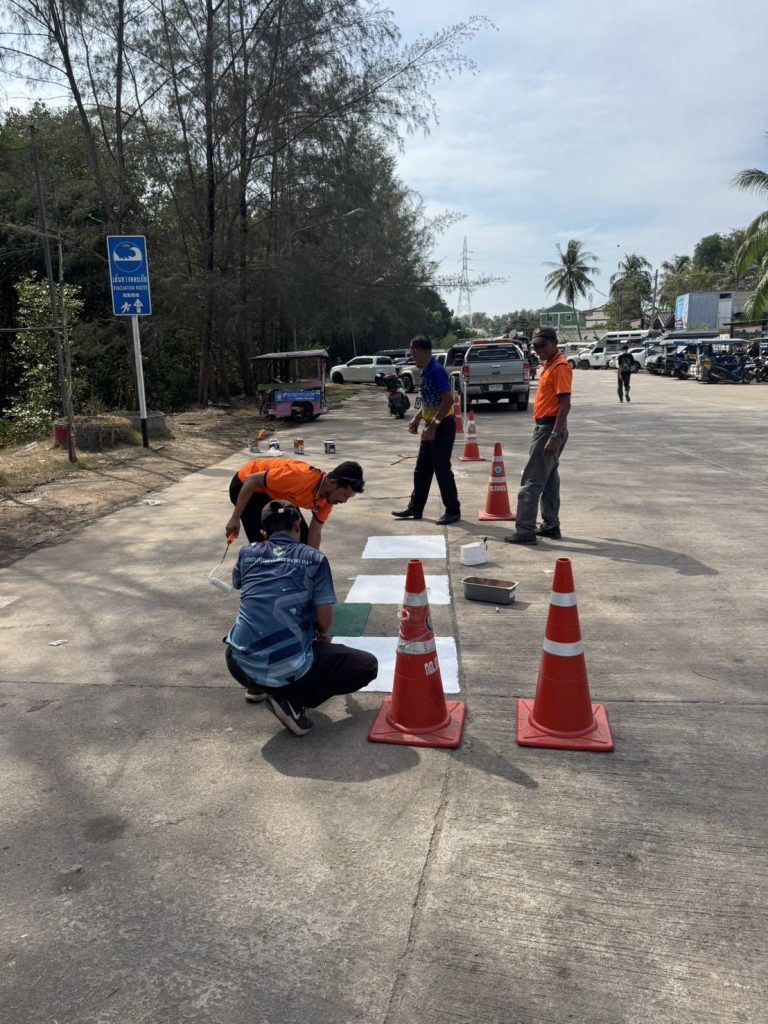 ข่ายจราจร ร่วมเทศบาลศาลาด่าน ตีเส้นขาวเหลืองจัดระเบียบการจราจรบริเวณท่าเรือทัวร์