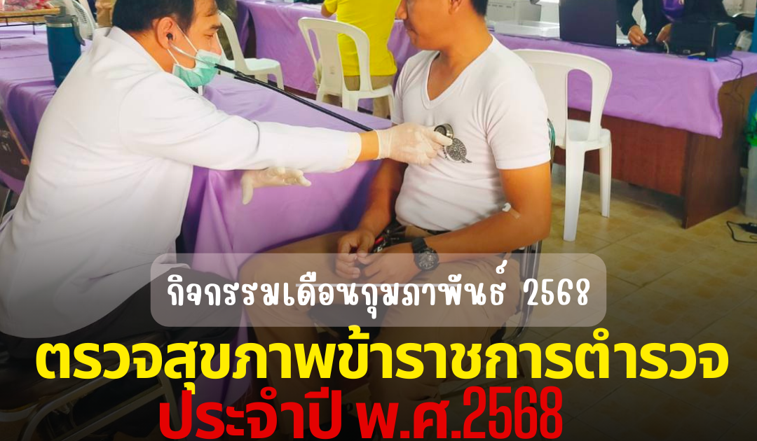 วันที่ 17 ก.พ.68 เวลา 07.00 – 09.00 น. ข้าราชการตำรวจ สภ.เกาะลันตา ตรวจสุขภาพประจำปี พ.ศ.2568 ตรวจโดยทีมแพทย์ พยาบาล ของสำนักวิชาสหเวชศาสตร มหาวิทยาลัยวลัยลักษณ์ สถานที่ตรวจห้องประชุม ศปก.สภ.เกาะลันตา