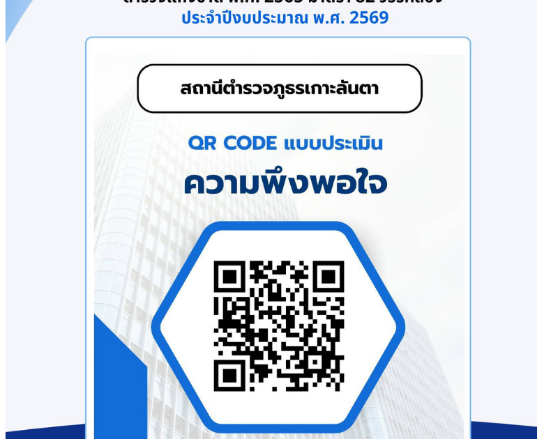 ประชาสัมพันธ์เชิญชวนประชาชนประเมินความพึงพอใจต่อการให้บริการของสถานีตำรวจ สแกน QR Code เพื่อตอบแบบประเมิน