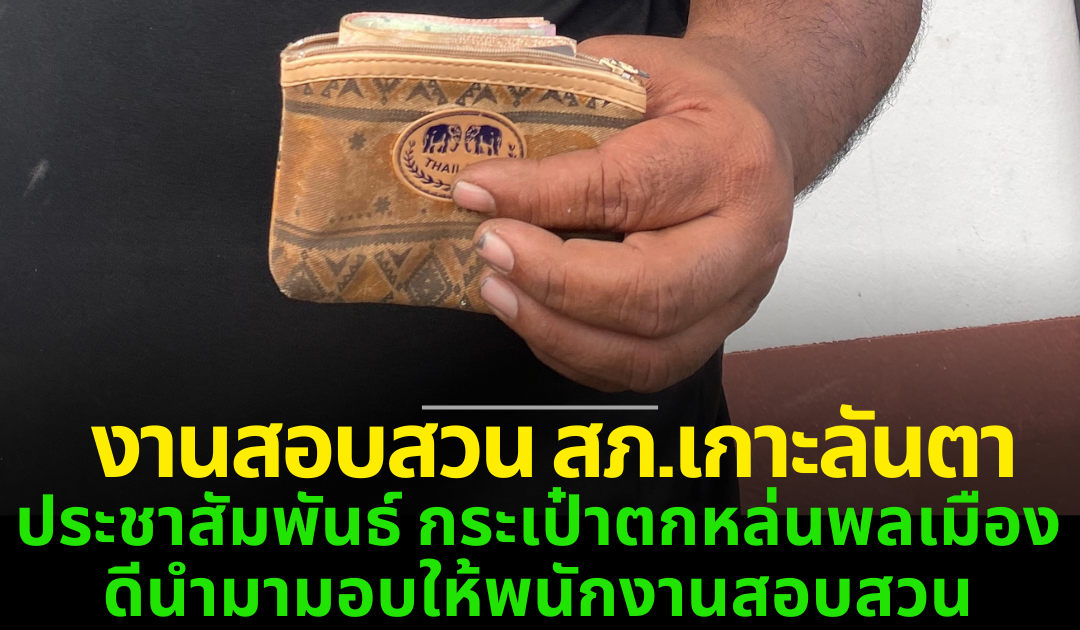 ประชาสัมพันธ์เพื่อทราบ ท่านใดกระเป๋าตกหล่นสุญหาย สามารถติดต่่อมารับกระเป๋าได้ที่ สภ.เกาะลันตา มีพลเมืองดี พบกระเป๋าเงิน นำมามอบไว้ที่พนักงานสอบสวนเวร สามารถสอบถามได้ที่ศูนย์บริการประชาชน One Stop Service สภ.เกาะลันตา หรือโทรมาสอบถาม สภ.เกาะลันตา 0-7566-8192 ขอชื่นชมผู้พบกระเป๋าที่มีความซื่อสัตย์ สมควรได้รับการยกย่องชมเชย เป็นพลเมืองดี จิตใจงามล่าง