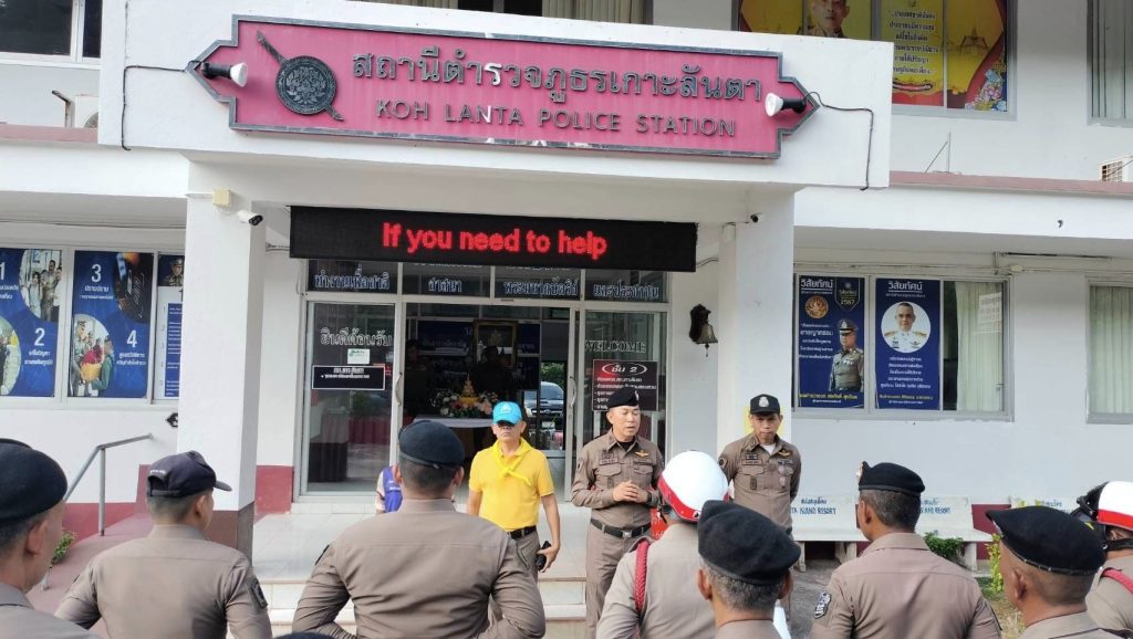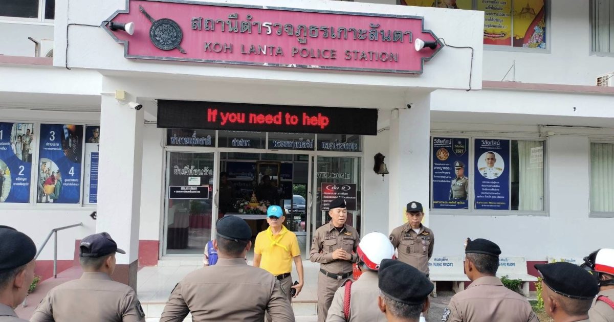 เมื่อวันที่ 13 เม.ย.67 เวลา 16.30 น. พ.ต.อ.พิศิษฐ์ ชื่นเพ็ชร รอง ผบก.ภ.จว.กระบี่ ได้เดินทางมาตรวจเยี่ยม สภ.เกาะลันตา พบ พ.ต.อ.ศิริธรรม นาควรรณ ผกก.สภ.เกาะลันตา, พ.ต.ท.ปิ่นเพชร ช่อคง รอง ผกก.ป.สภ.เกาะลันตา พ.ต.ท.สุชาติ สิงหา ปรก.รอง ผกก.สส.ฯ และข้าราชการตำรวจ สภ.เกาะลันตา ได้ปล่อยแถวบูรณาการร่วม ตำรวจ, ฝ่ายปกครอง ผู้นำท้องถิ่น เพื่อปฏิบัติการป้องกันและลดอุบัติบนท้องถนนในช่วง 7 วันอันตรายสงกรานต์ปี 2567 ณ บริเวณหน้าสถานีตำรวจภูธรเกาะลันตา