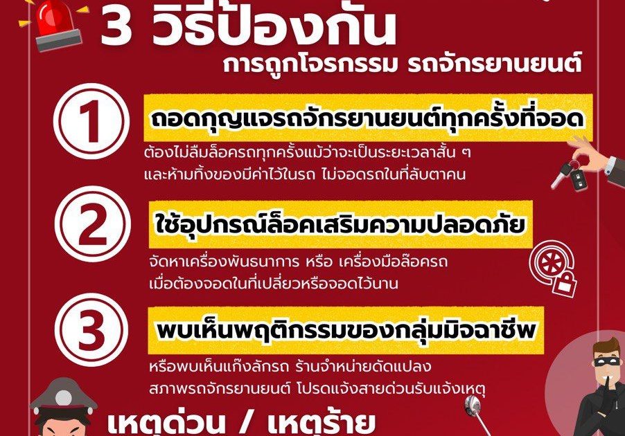 3.พบเห็นพฤติกรรมของกลุ่มมิจฉาชีพ หรือแก๊งลักรถ ร้านจำหน่าย ดัดแปลง สภาพรถจักรยานยนต์ โปรดแจ้งสายด่วนรับแจ้งเหตุ 191 ทันที