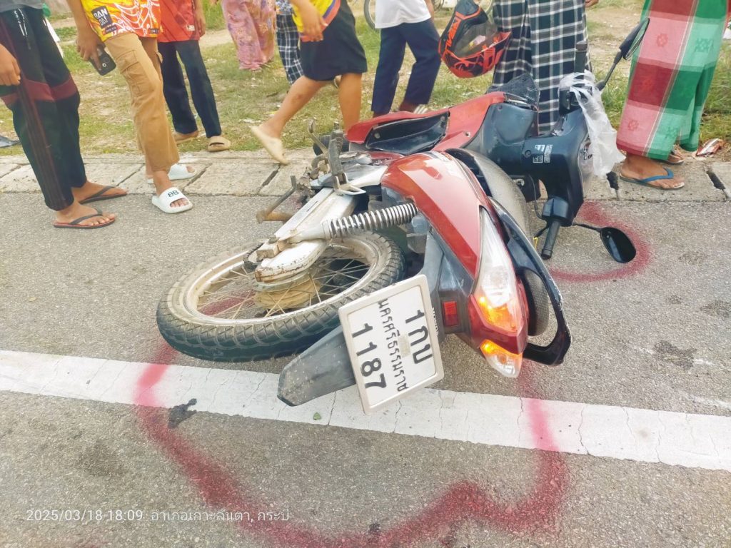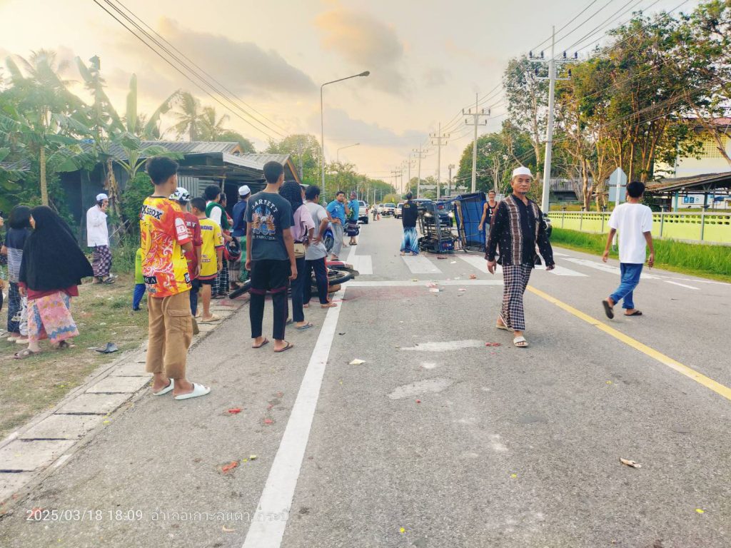 เมื่อวันที่ ๑๘ มี.ค.๖๘ เวลาประมาณ ๑๗.๓๐ น. ได้รับแจ้งจากพลเมืองดีว่ามีอุบัติเหตุเฉี่่ยวชนกัน ระหว่างรถ จยย. ชนท้าย รถ จยย.พ่วงข้าง มีผู้ได้รับบาดเจ็บ ๒ ราย (ได้ประสานรถฉุกเฉิน ๑๖๖๙ ของ รพ.เกาะลันตา มารับตัวส่ง รพ.แล้ว) รถ จยย.คันเกิดเหตุกีดขวางถนน เหตุเกิดหน้าโรงเรียนบ้านทุ่งวิทยพัฒน์ ม.๓ ต.เกาะลันตาน้อย อ.เกาะลันตา จว.กระบี่
