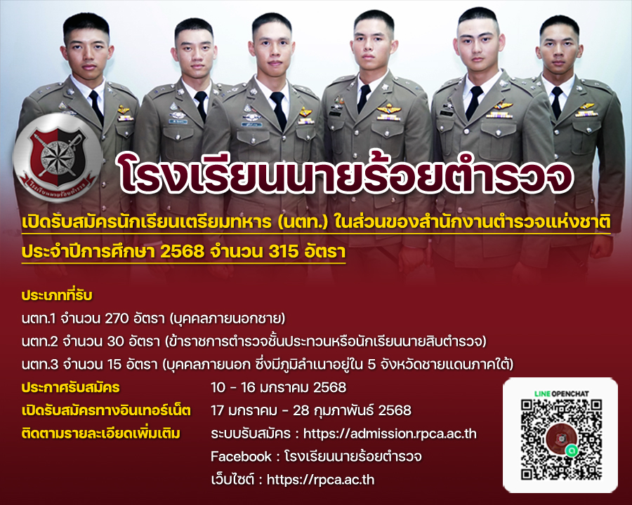 ประกาศโรงเรียนนายร้อยตำรวจ เรื่อง การรับสมัครและสอบคัดเลือกข้าราชการตำรวจ และบุคคลภายนอกเข้าเป็นนักเ