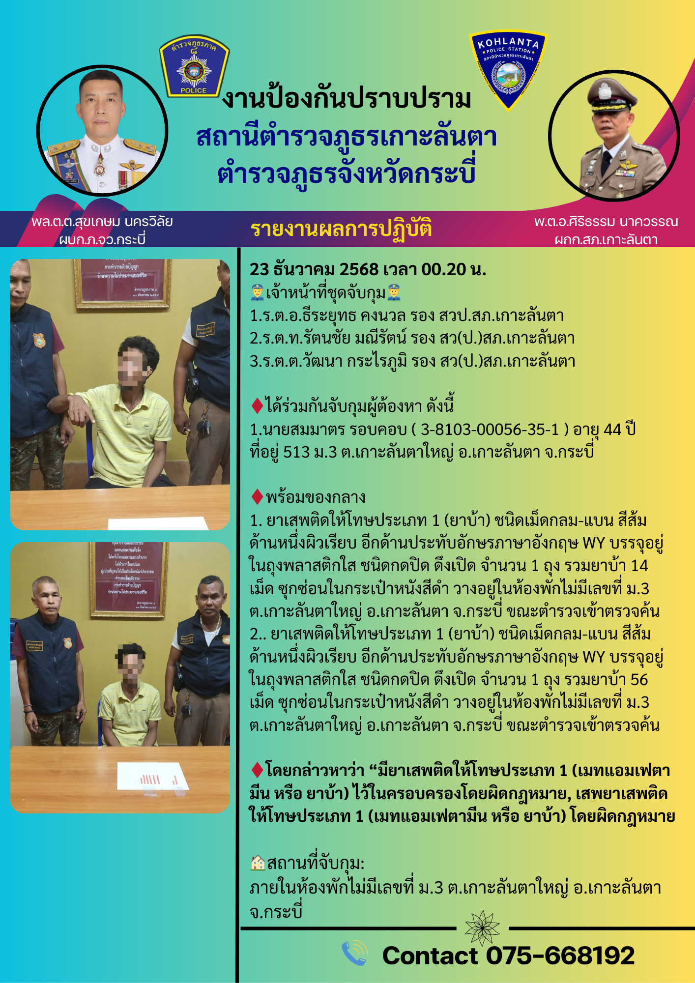 เรียน ผู้บังคับบัญชา ภ.จว.กระบี่ สภ.เกาะลันตา วันนี้ ( 24 ธ.ค ..2568) เวลา 00.10 น ภายใต้อำนวยการของ
