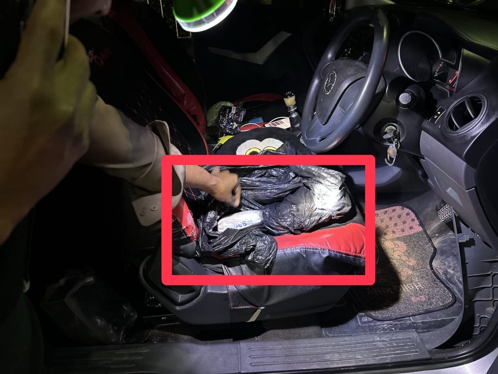 1.ยาเสพติดให้โทษประเภท 1 (ยาบ้า ) ชนิดเม็ดกลมแบนสีส้มและสีเขียว ด้านหนึ่งผิวเรียบ อีกด้านประทับอักษรภาษาอังกฤษ WY บรรจุอยู่ในห่อกระดาษสีขาวประทับตรา 999 ดาว 5 ดวง มัดด้วยหนังยาง ห่อทับด้วยถุงพลาสติกใส จำนวน 3 มัด มัดละ 10 ถุง ถุงละ 200 เม็ด รวมจำนวน 5,955 เม็ด ซุกซ่อนอยู่ในแผงกระจัง(แผงวงจรควบคุมระบบไฟรถยนต์) ใต้พวงมาลัย