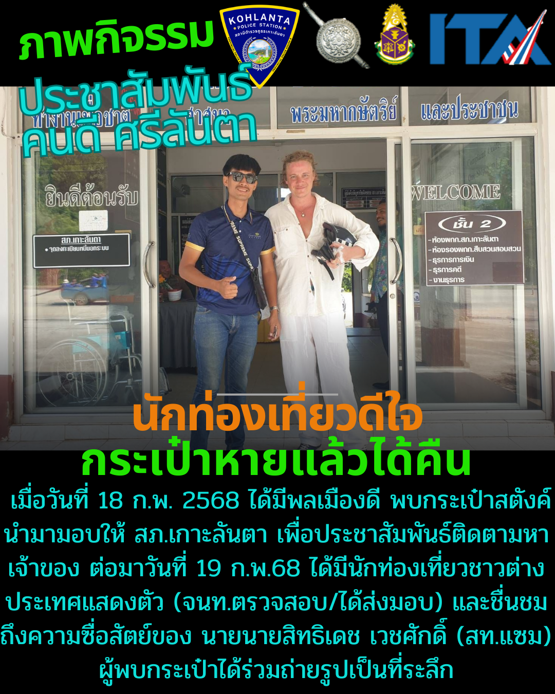 ชื่นชมคนทำดี พบกระเป๋านักท่องเที่ยวตกหล่น มอบให้เจ้าหน้าที่ติดตามหาเจ้าของ