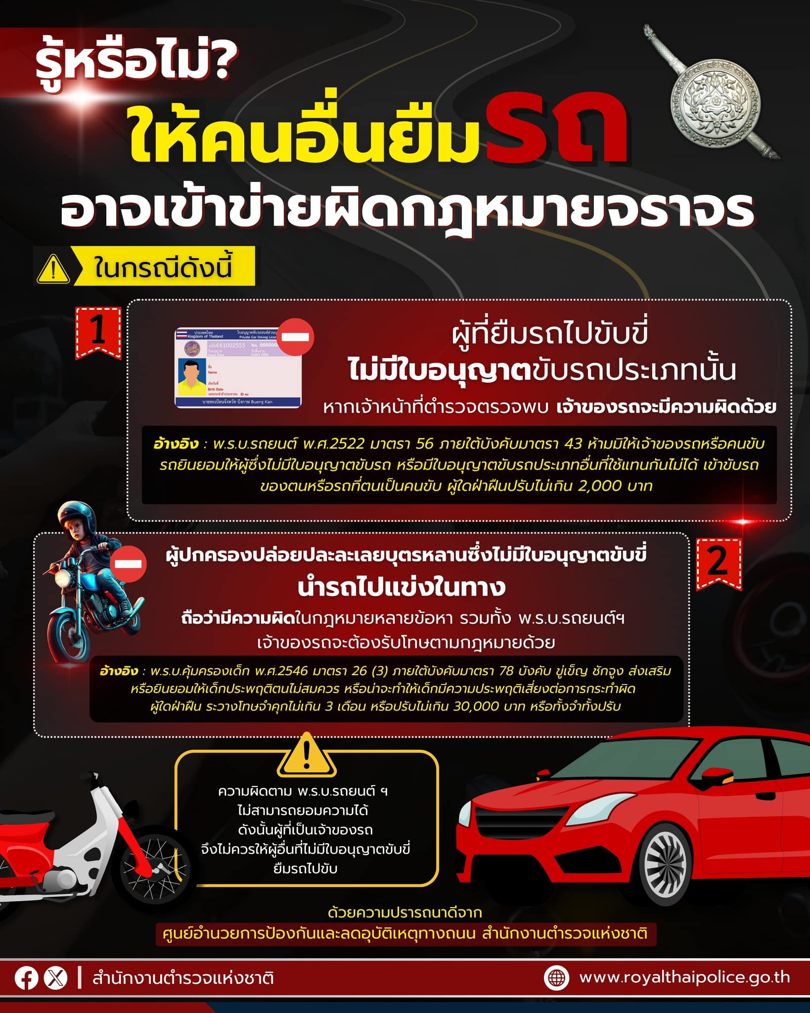 ให้ผู้อื่นยืมรถ อาจเข้าข่ายผิดกฎหมายจราจร