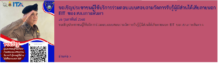 ขอเชิญประชาชนผู้ใช้บริการร่วมตอบแบบสอบถามวัดการรับรู้ผู้มีส่วนได้เสียภายนอก EIT ของ สภ.เกาะลันตา